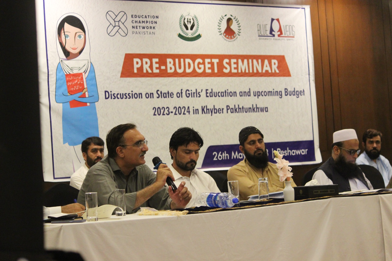 The seminar was organised by Blue Veins, a non-governmental organisation based in Peshawar, in collaboration with KPCSW and the Khyber-Pakhtunkhwa KP Child Protection and Welfare Commission (KPCPWC). The objective of the seminar was to engage stakeholders to expand their agendas for girls’ education and gather input and demands regarding education financing priorities.