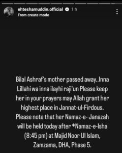 However, TV actor has not yet issued any statement regarding the death of his mother through his social media accounts. A few days ago, Bilal shared a prayerful message on his Instagram story, expressing hope for the acceptance of his prayers a few days ago.