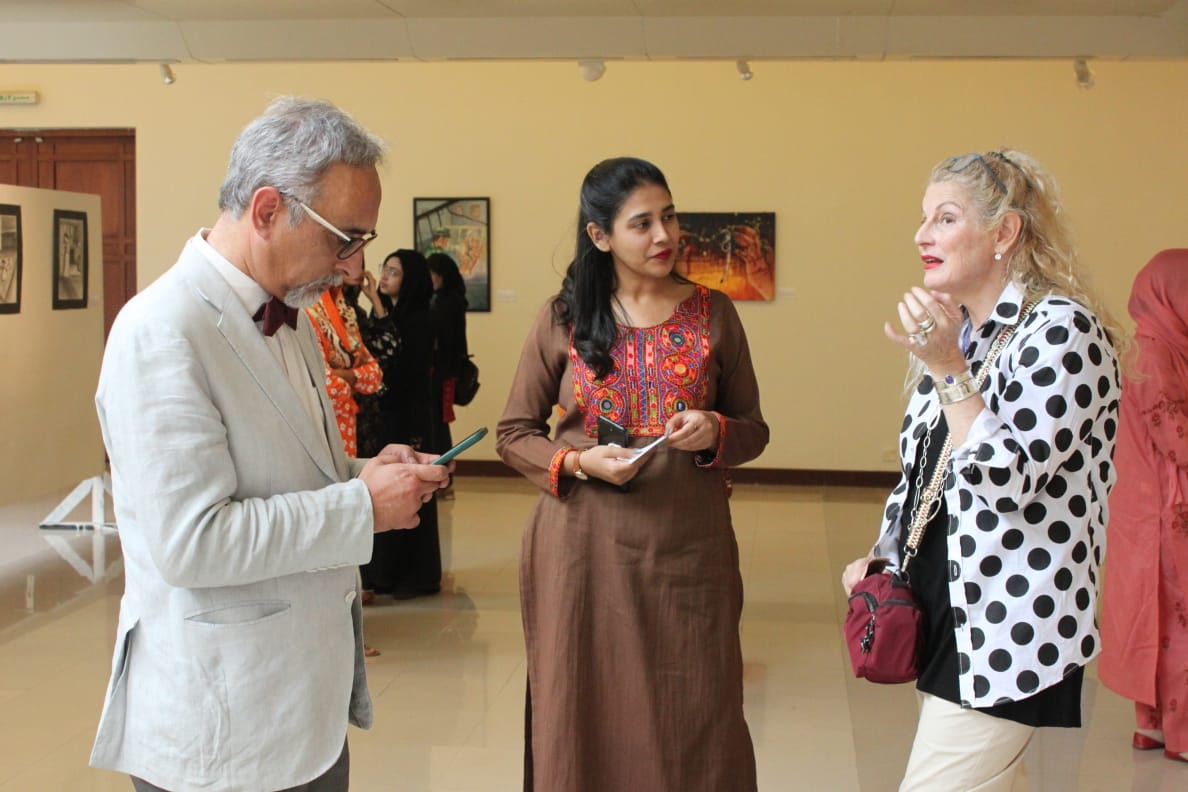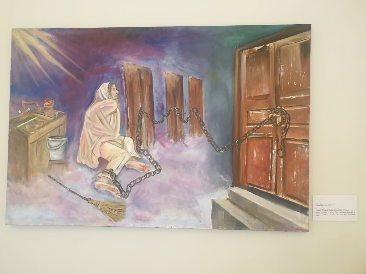 A painting by Roshan Bakht, titled ‘Carving Fate’, drew visitors’ attention. The painting represented the story of a street boy named Noman Khan from Peshawar, who worked as a servant while he joined a free art academy and successfully made his art career. Khan changed his fate through hard work and exhibited his paintings at 16.