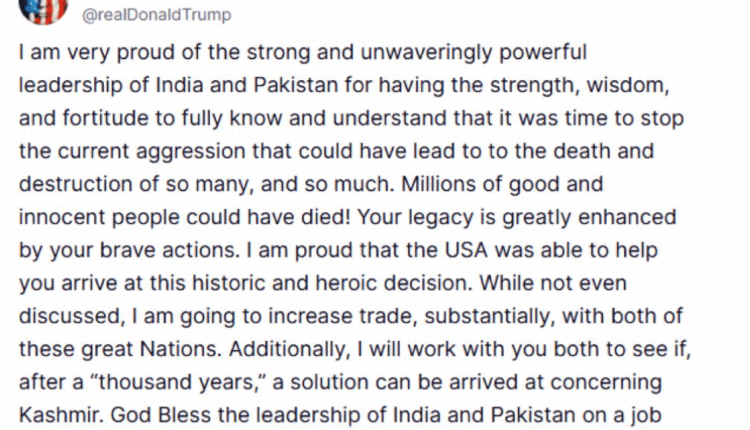In the wake of a US-brokered ceasefire between India and Pakistan, former President Donald Trump has pledged to significantly increase trade with both nations while also reviving efforts to mediate the long-standing Kashmir dispute.