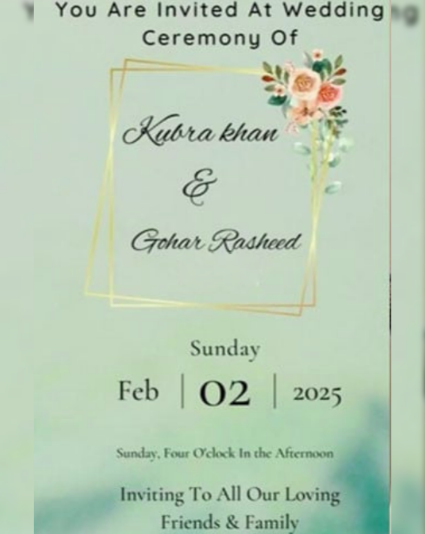 Islamabad: Pakistani showbiz stars Kubra Khan and Gohar Rasheed are set to embark on a new chapter in their lives as they officially announce their wedding.